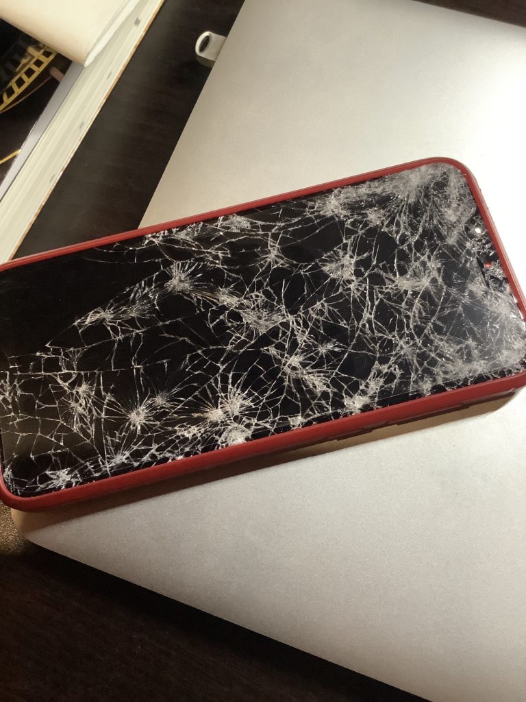 こんな感じで、バキバキに割れてしまいなかなかのショックを受けました。液晶がつかないので操作ができません。いくつか解決方法はあるので試してみたいと思います!