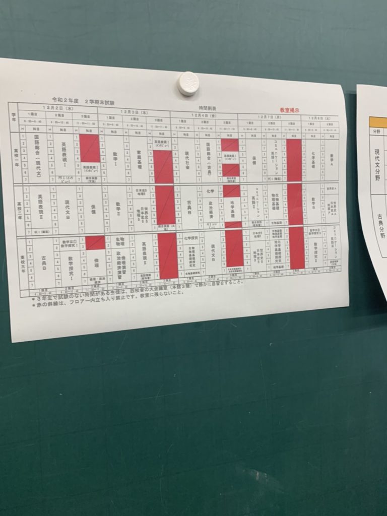 僕は2年なんですが、難しい教科が前半に集まっています。